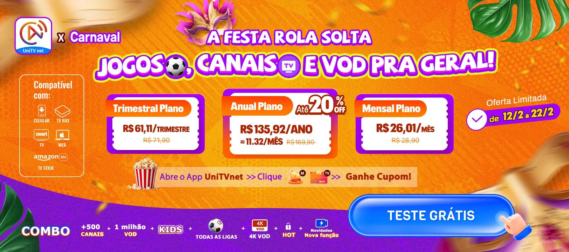 Dispositivos suportados:TV, dispositivo móvel e versão Web